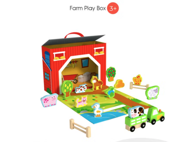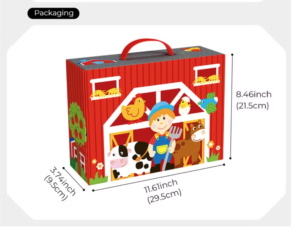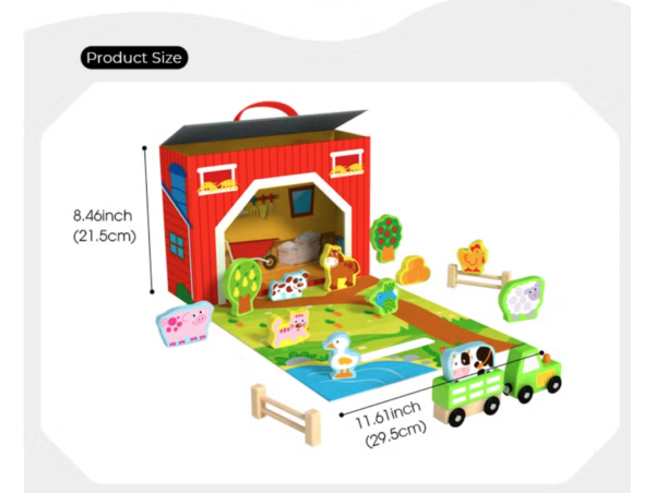 - Dual-Purpose Packaging: The sturdy carrying case features a colorful barn